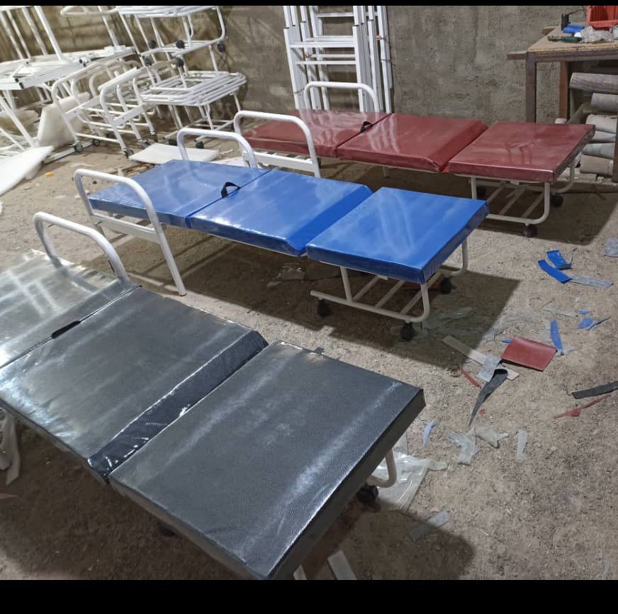 تخت سه شکن بیمارستانی مدل مکانیکی با ضخامت آهن سنگین و تحمل وزن ۱۵۰+ کیلوگرم